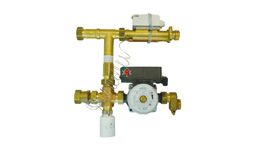 E2505型混水中心能夠?qū)⒛┒说嘏邷毓┧档汀.?dāng)采暖末端散熱器與地暖同時(shí)存在,熱源供水溫度較高的系統(tǒng)中,將高溫供水與低溫回水混合,通過(guò)傳感器與溫控閥調(diào)節(jié)混合比例,達(dá)到降低供水水溫目的。