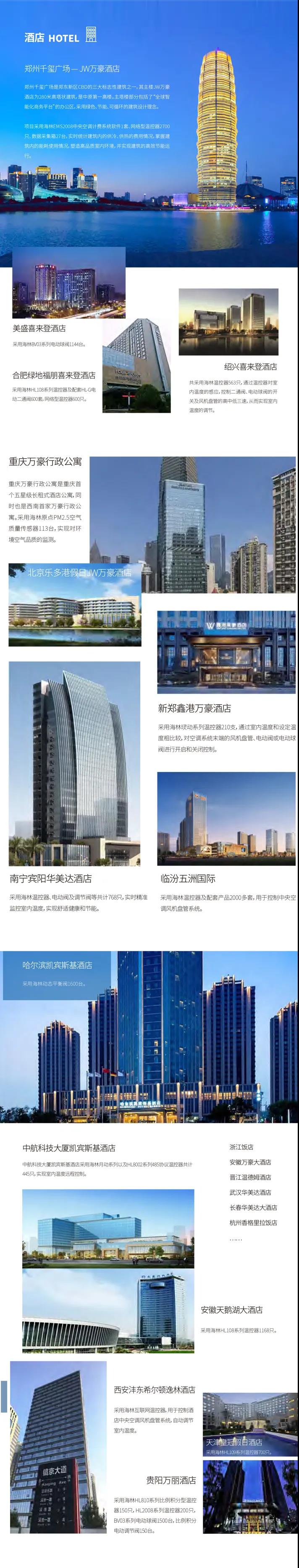 海林節(jié)能憑借在國內暖通自控領域21年的探索和引領,以及先進的技術和優(yōu)質的產品,成為國內眾多酒店項目暖通自控設備供應商,為酒店舒適健康和節(jié)能環(huán)境提供智能控制。