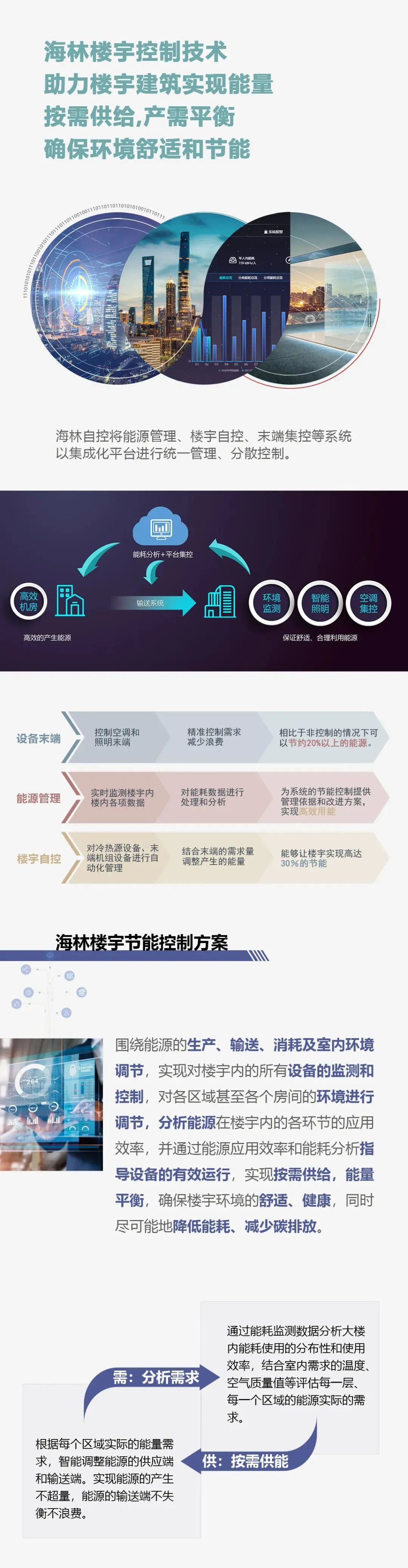 海林自控基于“自動控制+AI+IoT”技術(shù)及“樓宇自控+能源管理+微環(huán)境管理”方案,匯聚樓宇自控、能源管理及智能人居三大業(yè)務及全線產(chǎn)品,建立統(tǒng)一的數(shù)字化能源管理系統(tǒng)平臺,對建筑內(nèi)的空調(diào)、采暖、新風、熱水、燈光、窗簾及溫度、濕度、空氣質(zhì)量和能耗,實施監(jiān)測、控制、分析和管理,創(chuàng)建舒適健康和節(jié)能的建筑環(huán)境,同時實現(xiàn)節(jié)能降耗,助力建筑樓宇脫碳,促進可持續(xù)發(fā)展。
