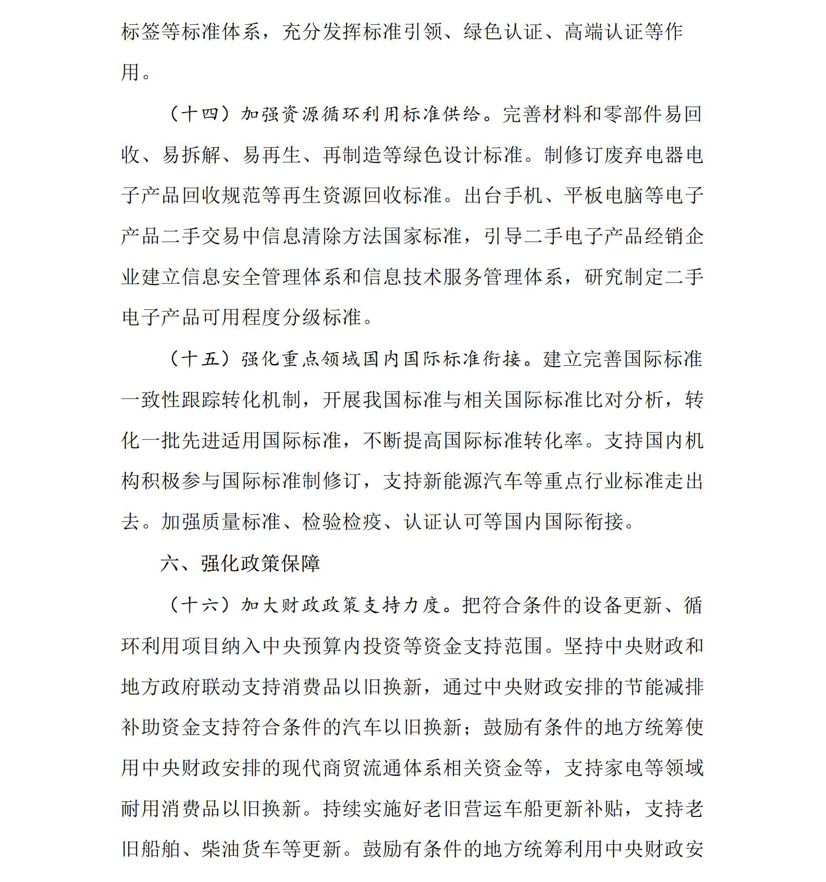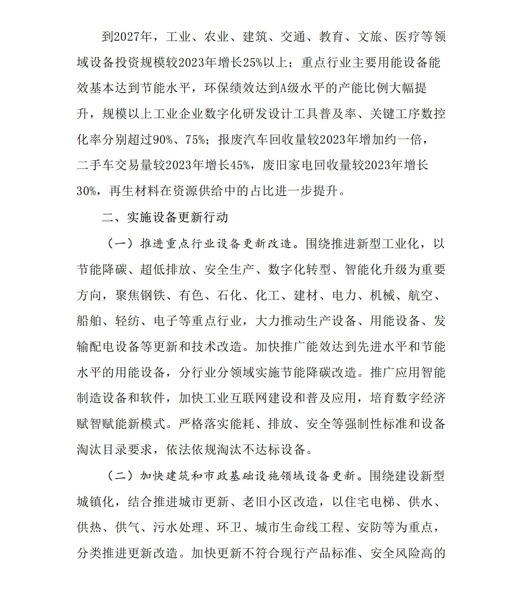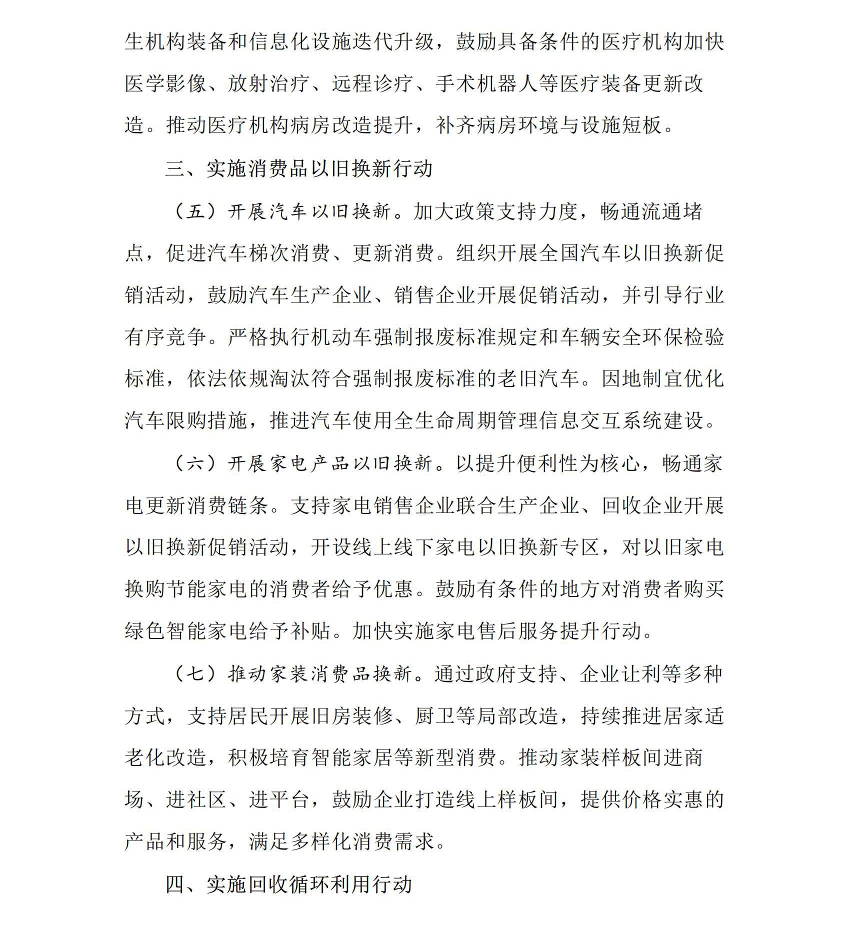 3月13日晚間,國務院正式印發(fā)《推動大規(guī)模設備更新和消費品以舊換新行動方案》。