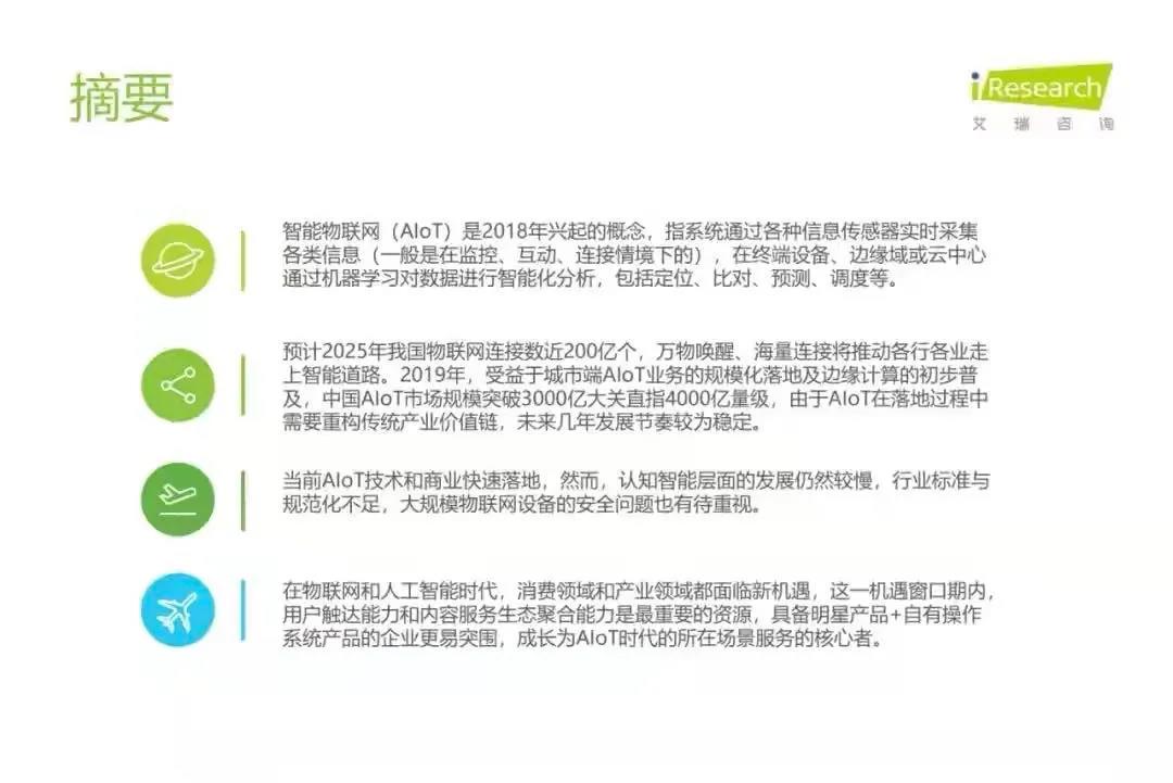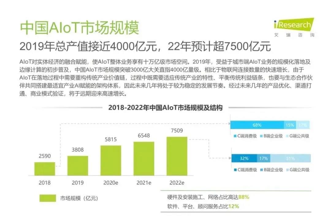 近日,艾瑞咨詢與金山云聯(lián)合發(fā)布《2020年中國智能物聯(lián)網(wǎng)(AIoT)白皮書》。白皮書對未來AIoT的應(yīng)用愿景進(jìn)行了描繪,對行業(yè)應(yīng)用場景及發(fā)展空間進(jìn)行了分析,旨在將向市場提供更多的參考依據(jù)。