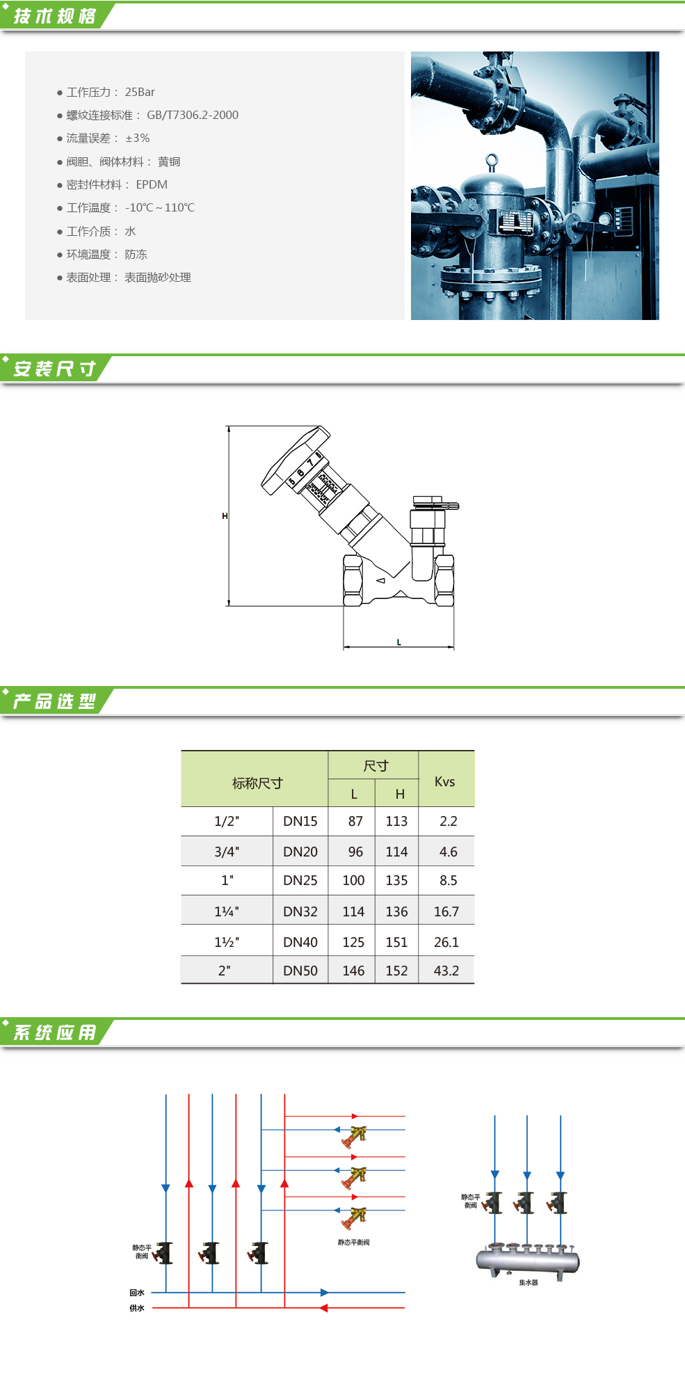 海林靜態(tài)平衡閥,可應(yīng)用于供熱或制冷的定量水系統(tǒng)中,用來(lái)平衡流量;具有關(guān)斷功能,可代替截止閥;具有最大行程鎖定功能,當(dāng)系統(tǒng)調(diào)試后,可將鎖定功能開(kāi)啟,日后需要關(guān)閉靜態(tài)閥進(jìn)行管路維護(hù)與檢修,結(jié)束后可以直接將閥門恢復(fù)到設(shè)定好的最大行程處,避免二次調(diào)試,節(jié)約大量時(shí)間與成本;攜帶有測(cè)量接頭,方便與測(cè)量設(shè)備的快速連接,節(jié)省調(diào)試時(shí)間;可安裝于供水或回水管路。